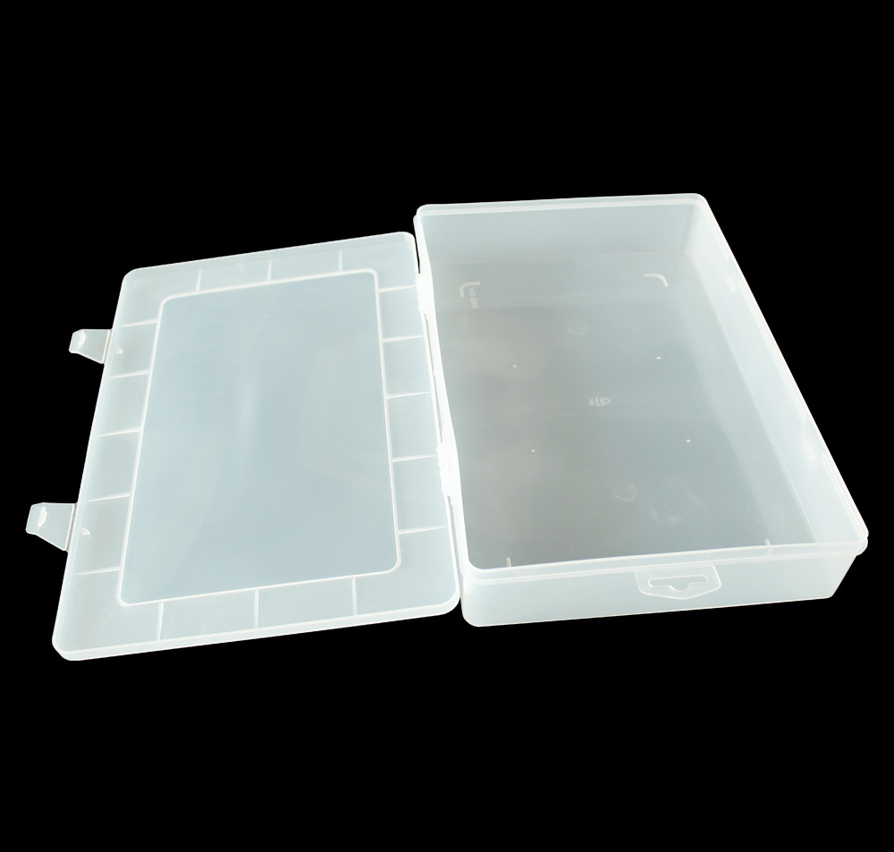 1) 材料:透明PP 2) 柔韧的铰链设计,易于打开与保存 3) 有可移动的间隔,大小组合可以不同 4) 折叠时可以节省空间的设计 5) 广泛用于电子元件,药丸,以及鱼钩 鱼饵的存储等行业