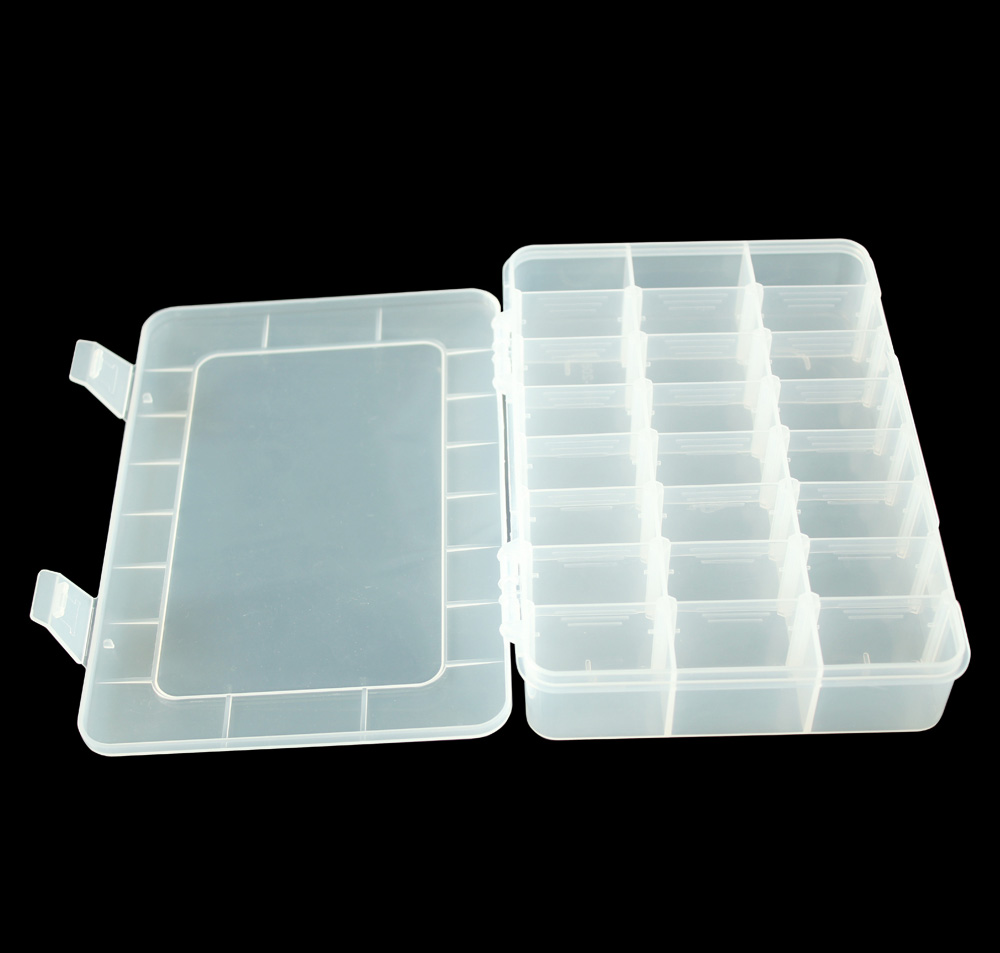 1) 材料:透明PP 2) 柔韧的铰链设计,易于打开与保存 3) 有可移动的间隔,大小组合可以不同 4) 折叠时可以节省空间的设计 5) 广泛用于电子元件,药丸,以及鱼钩 鱼饵的存储等行业