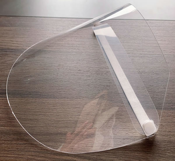 面屏由高清透明PET材质和松紧带组成,可调节包围式,可防止飞沫、粉尘、固体颗粒等飞溅物。可上下调节,酒精水洗消毒后重复使用,清晰防雾。 适用于医院、执勤站岗、NCP调查等多种场合。