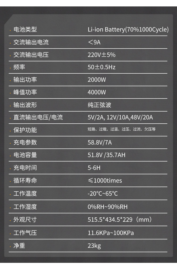 输出功率:2000W