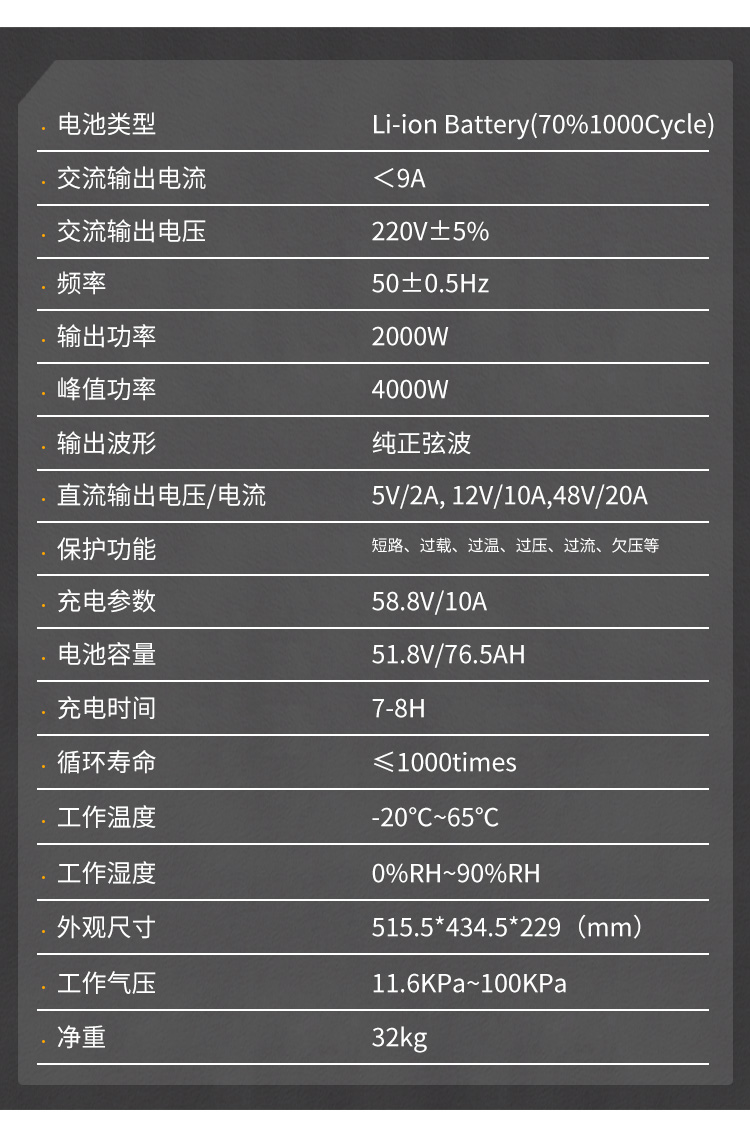 电池容量:51.8V/76.5AH